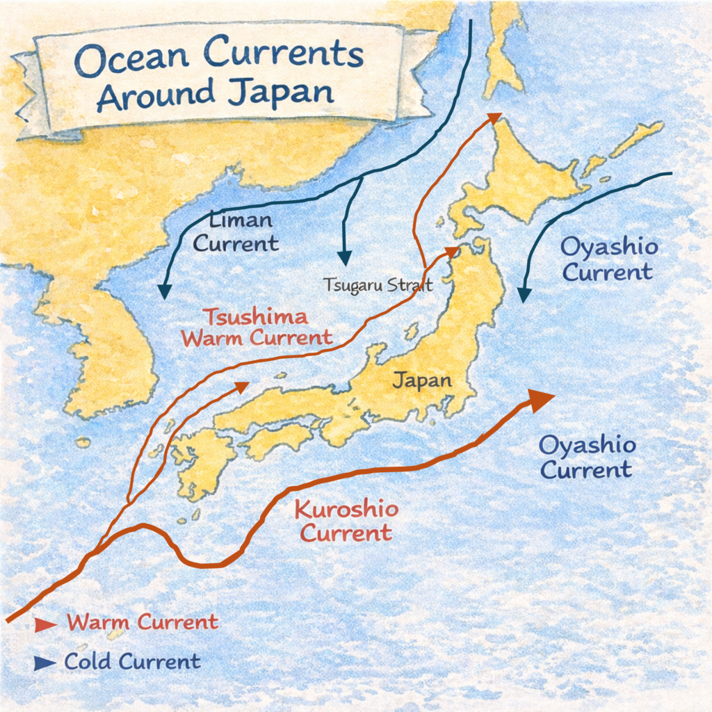 👉 When these two currents collide near Japan, plankton thrives — and fish grow stronger, tastier, and healthier.