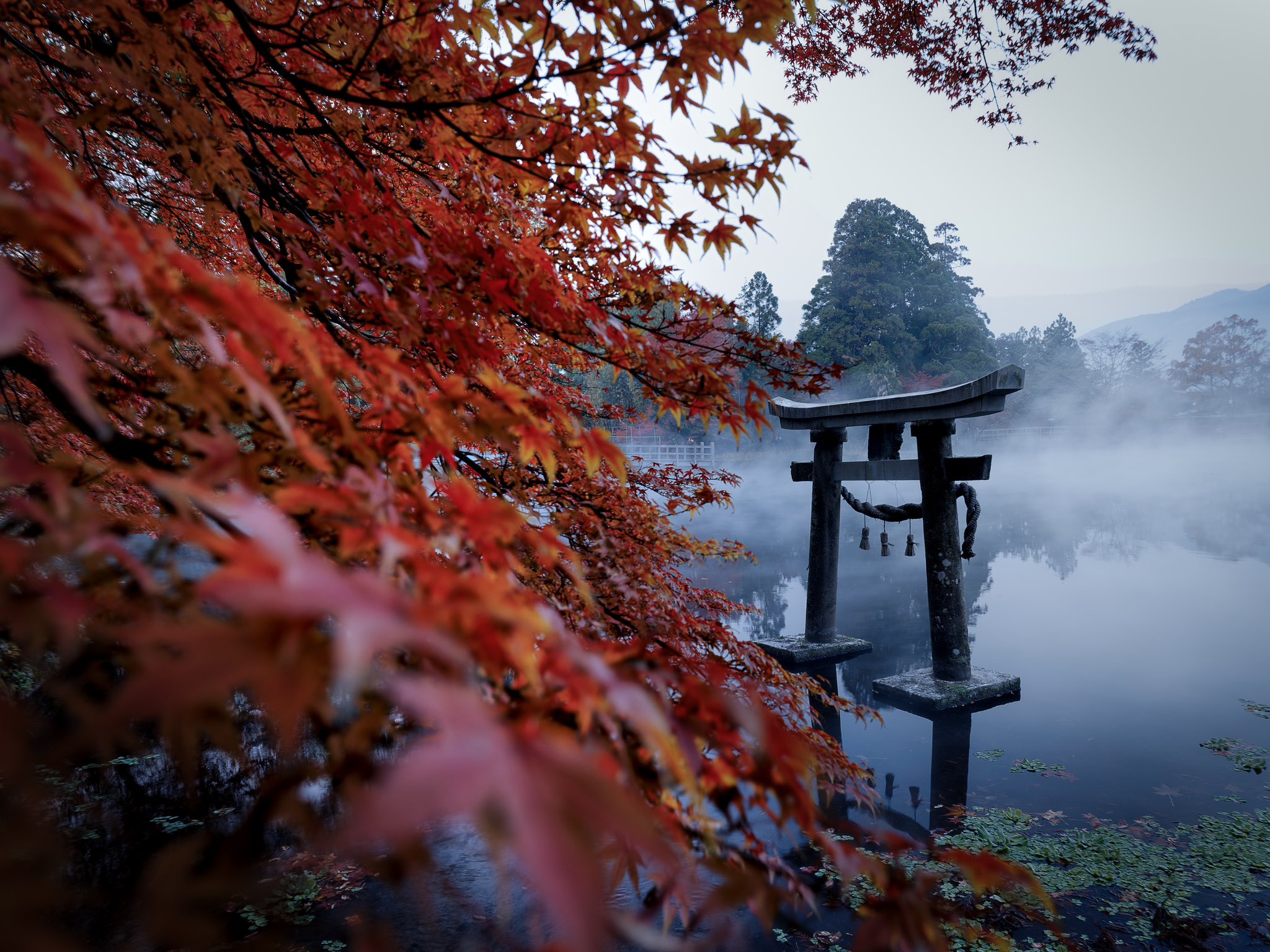 Yufuin_fall_red_leaves_yellow_Oita