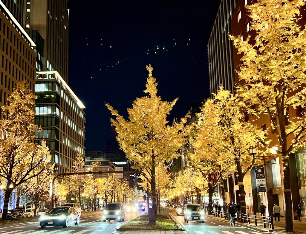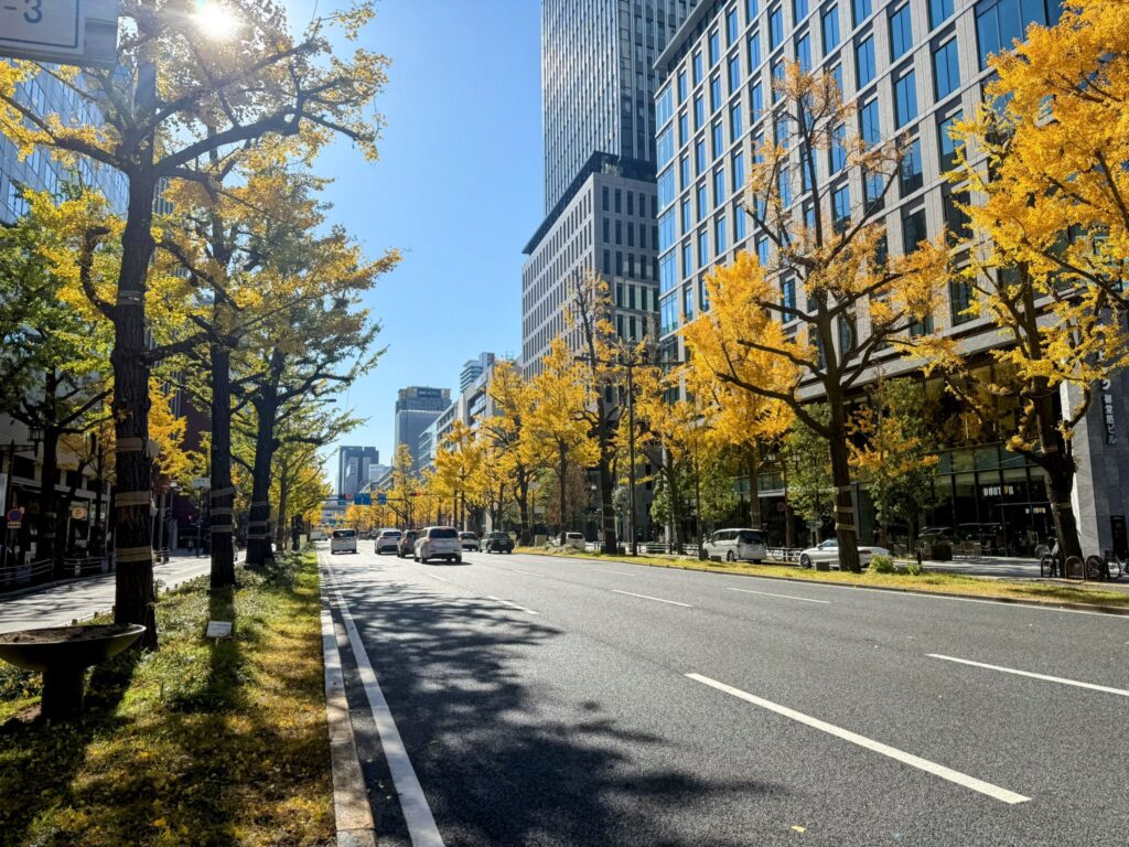 The Midosuji ginkgo leaves usually reach their peak color from mid-November to early December. Late November is considered the best time, when the leaves are most vibrant and the entire boulevard glows in golden hues.