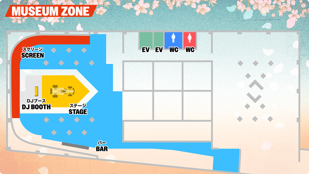 - MUSEUM ZONE (Star Rise Tower): A dedicated zone featuring video screenings on a large-scale screen accompanied by music. In addition, visitors can enjoy a cockpit experience in the McLaren Honda MP4/5.